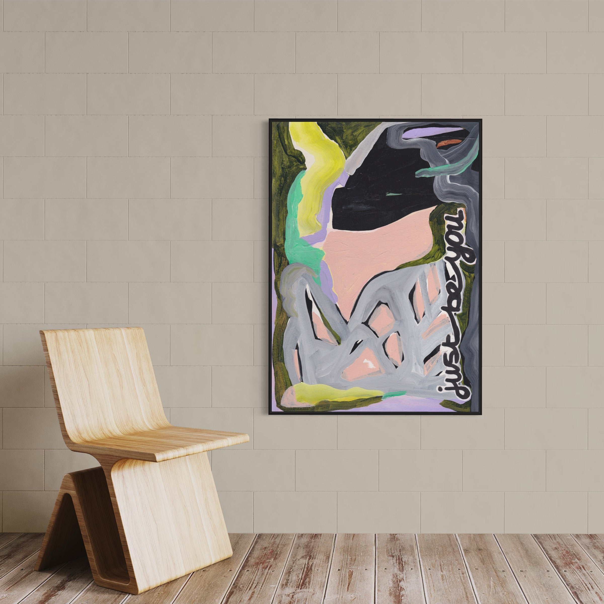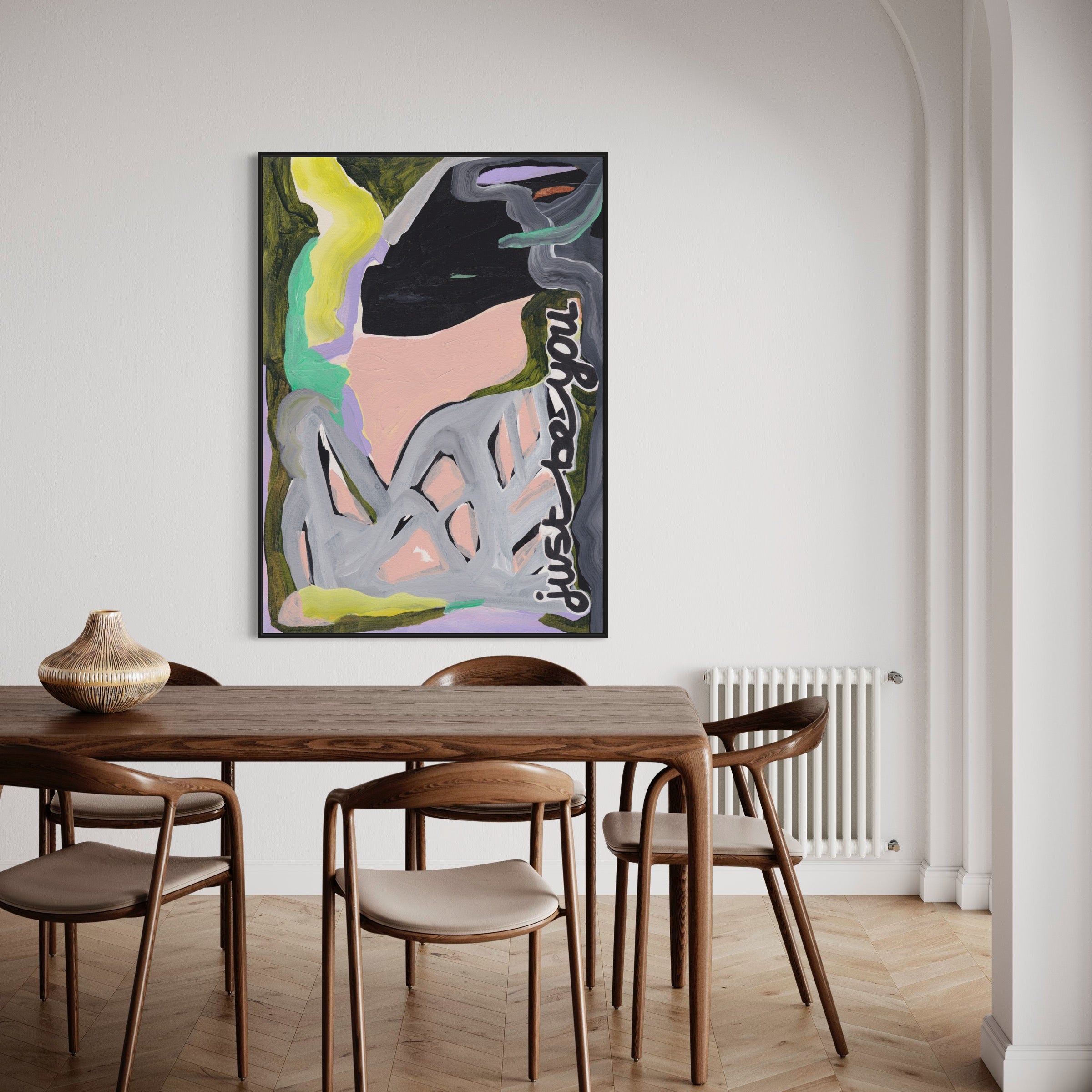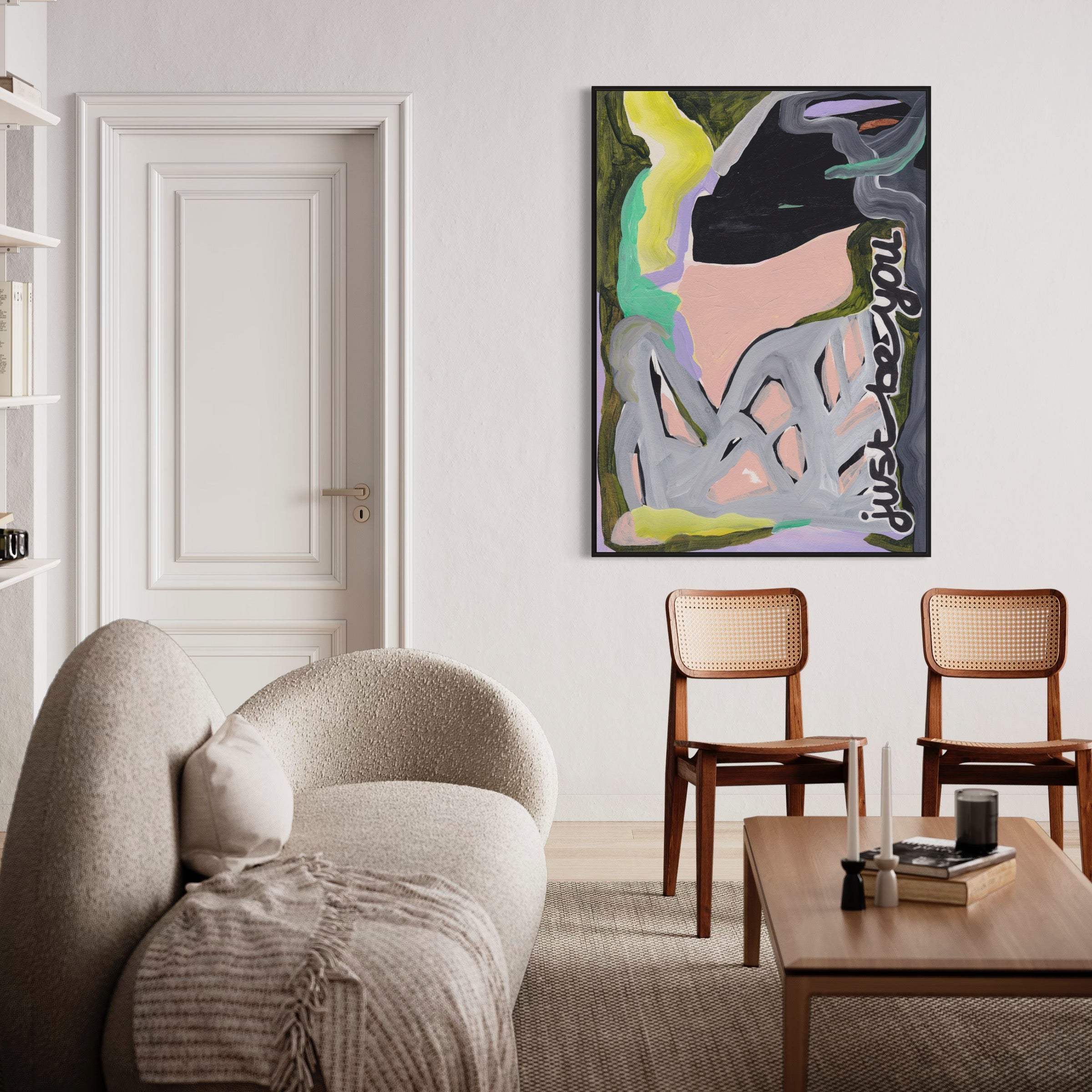 'Just Be You' is bold, colorful and totally unapologetic. Bright tones clash with raw, dark contrasts, and the words just be you. A piece that celebrates finding yourself — not what others expect, but who you really are. Loud, playful, a little rebellious… and exactly the reminder your wall deserves.