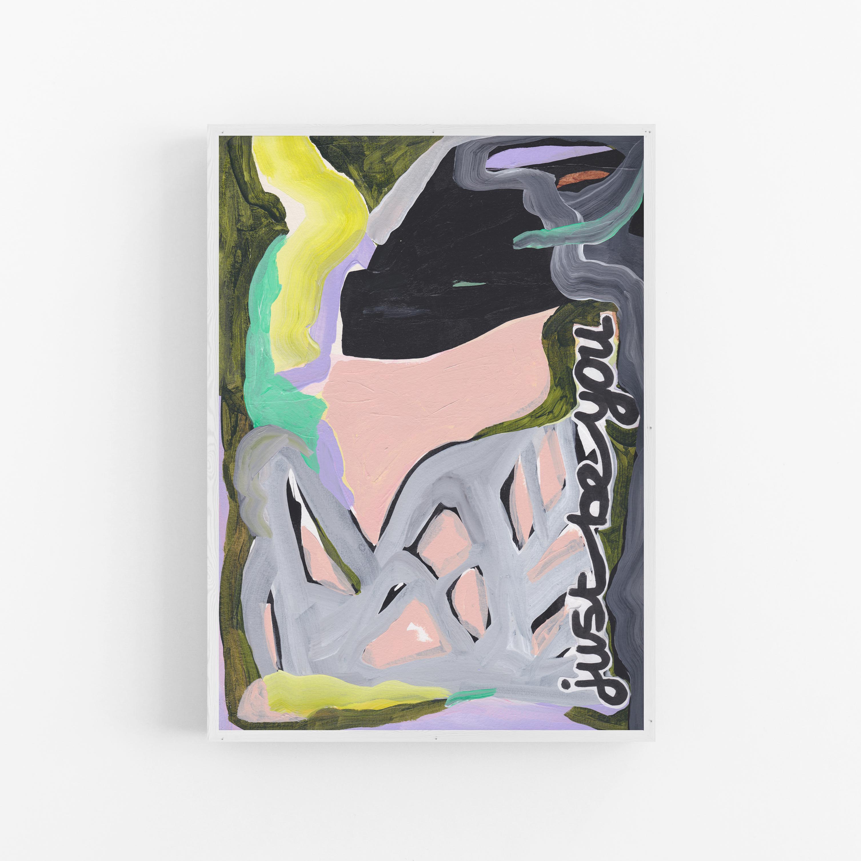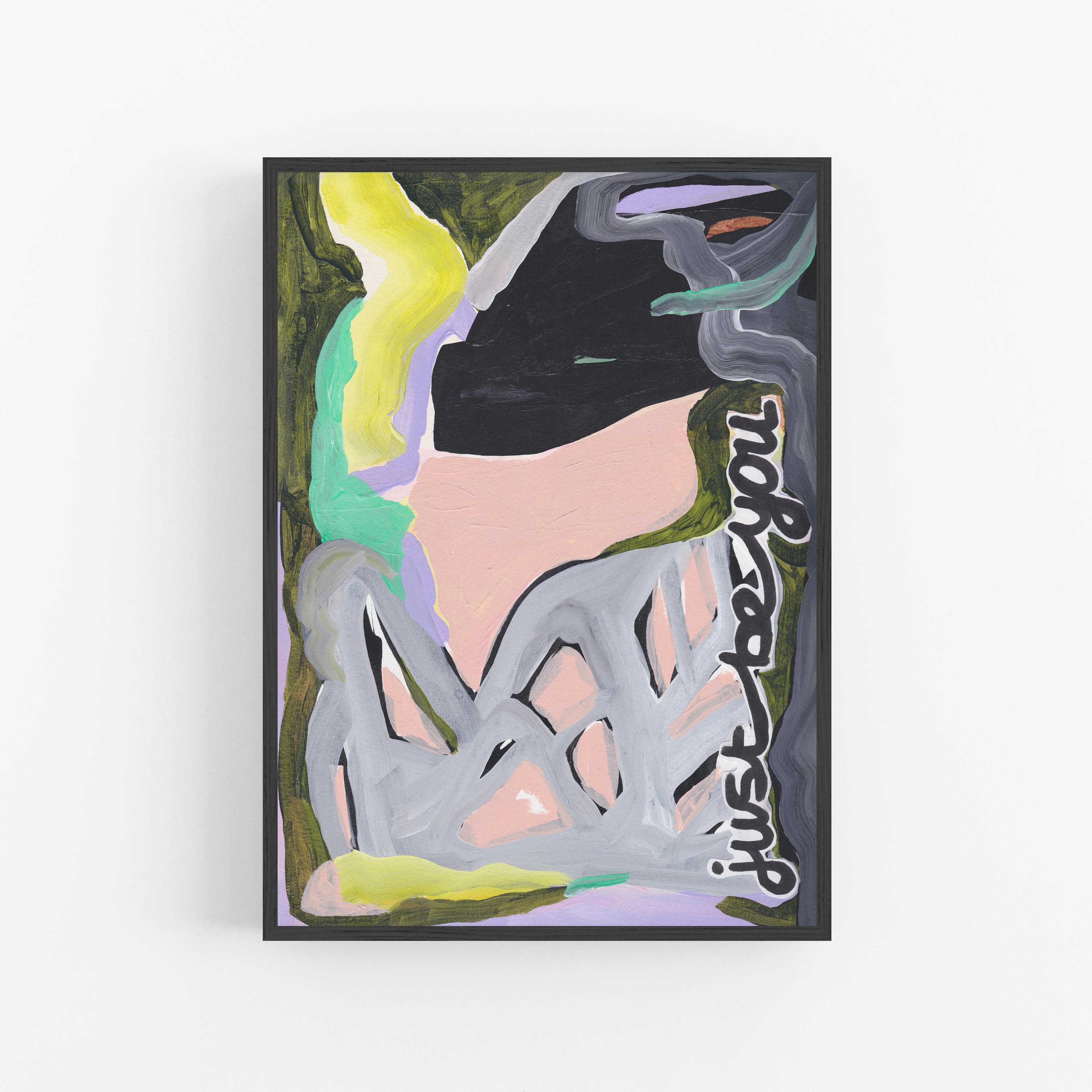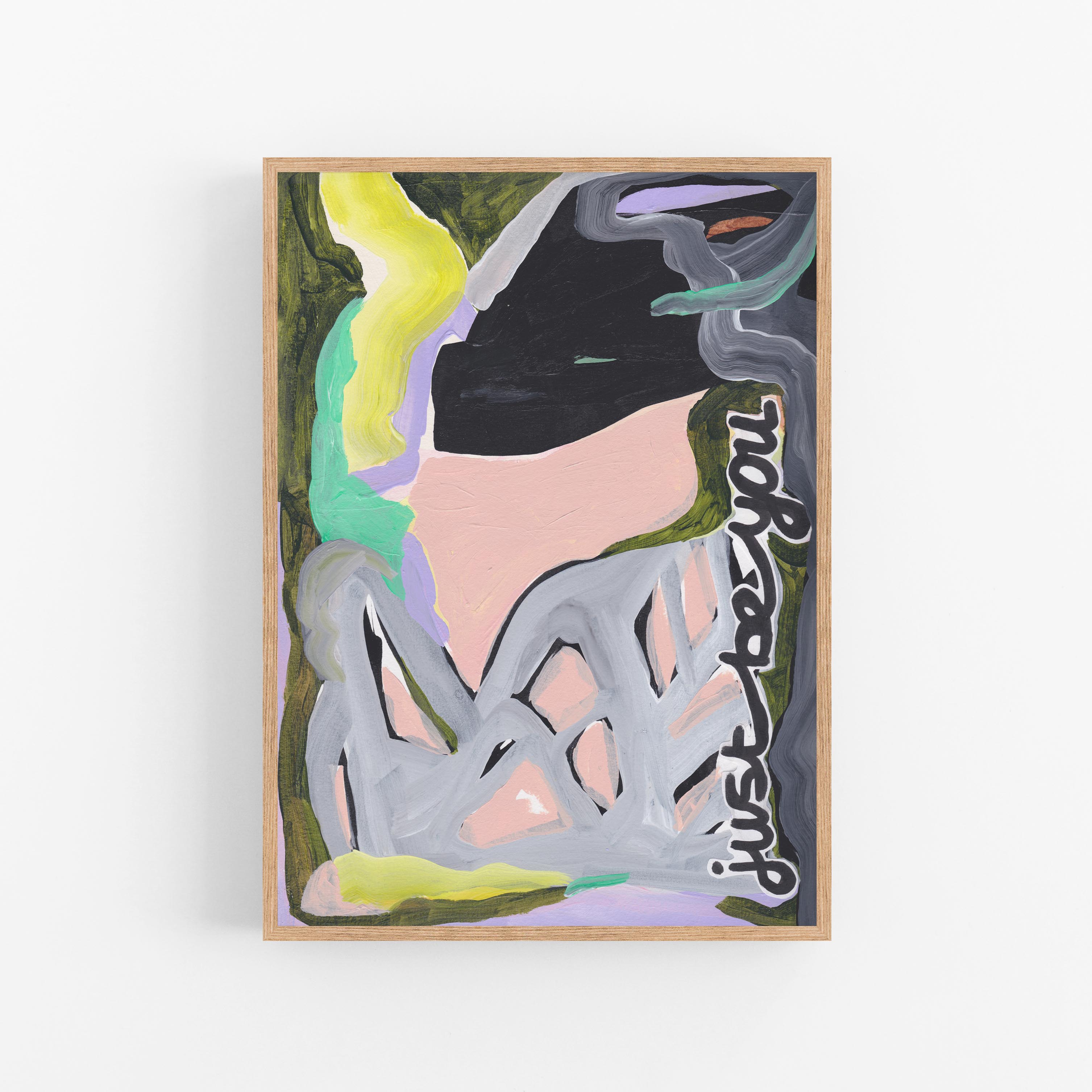 'Just Be You' is bold, colorful and totally unapologetic. Bright tones clash with raw, dark contrasts, and the words just be you. A piece that celebrates finding yourself — not what others expect, but who you really are. Loud, playful, a little rebellious… and exactly the reminder your wall deserves.