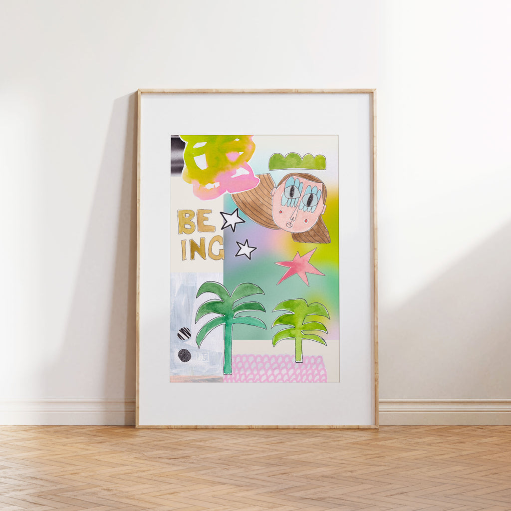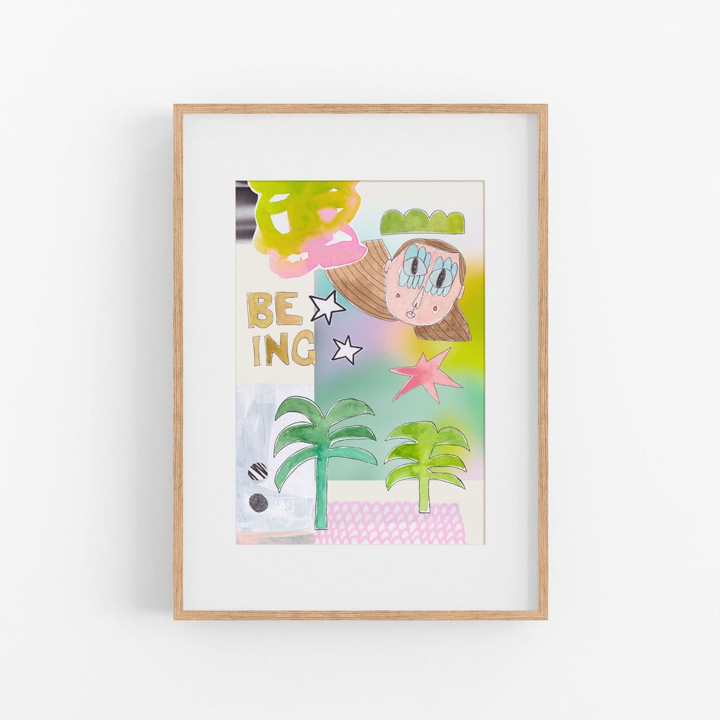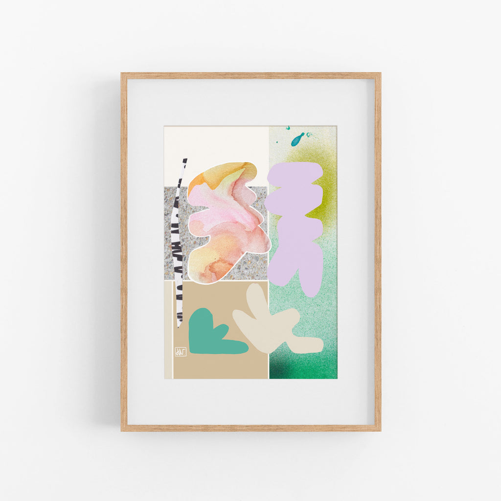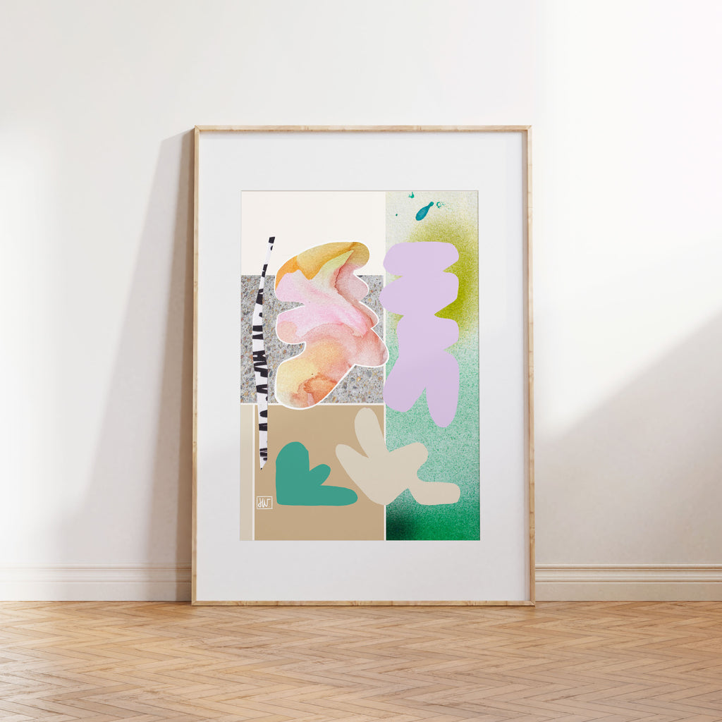 Premium paper art print in a wooden frame — clean and modern, ready to hang. Finished with passe-partout and glass for a refined finish.