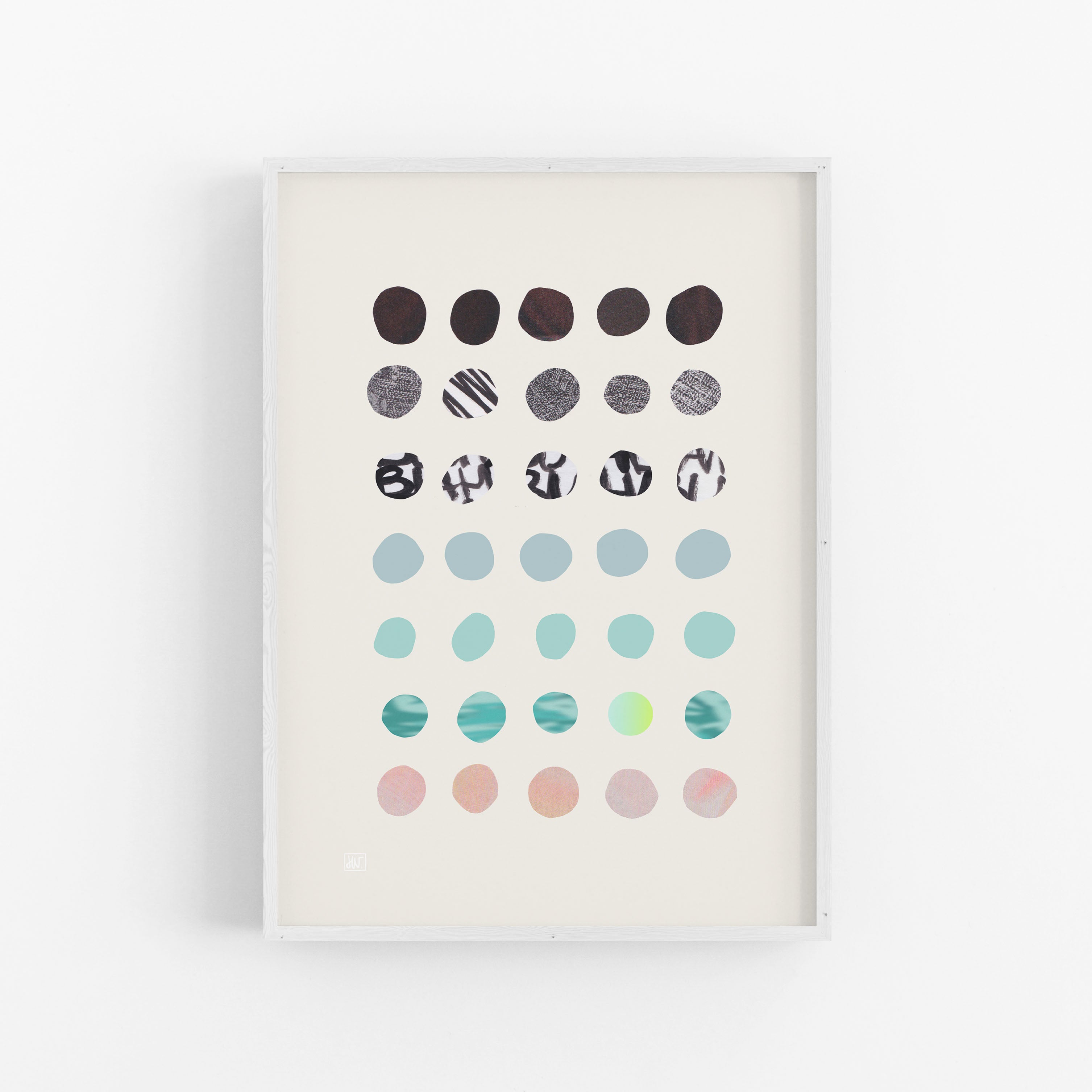 'Piece by Peace Teal' Dit is een werk uit de Transformative Teal serie. Geïnspireerd op vrijheid, zelfexpressie en de connectie met je innerlijke kind. De werken ontstaan intuïtief, als een mix van handgemaakte elementen zoals aquarel, airbrush en collage, gecombineerd met digitale lagen. Geen vast plan, wel gevoel.