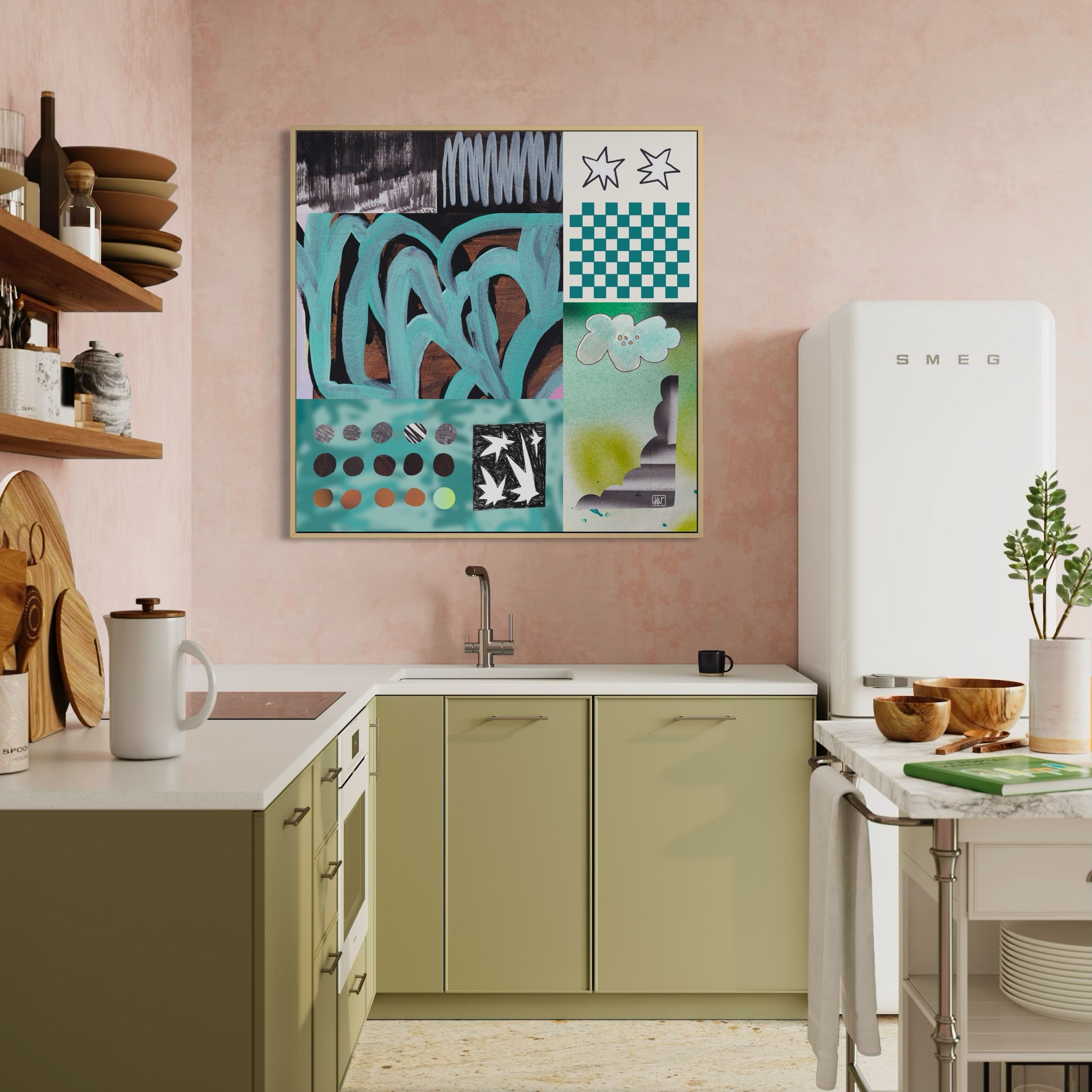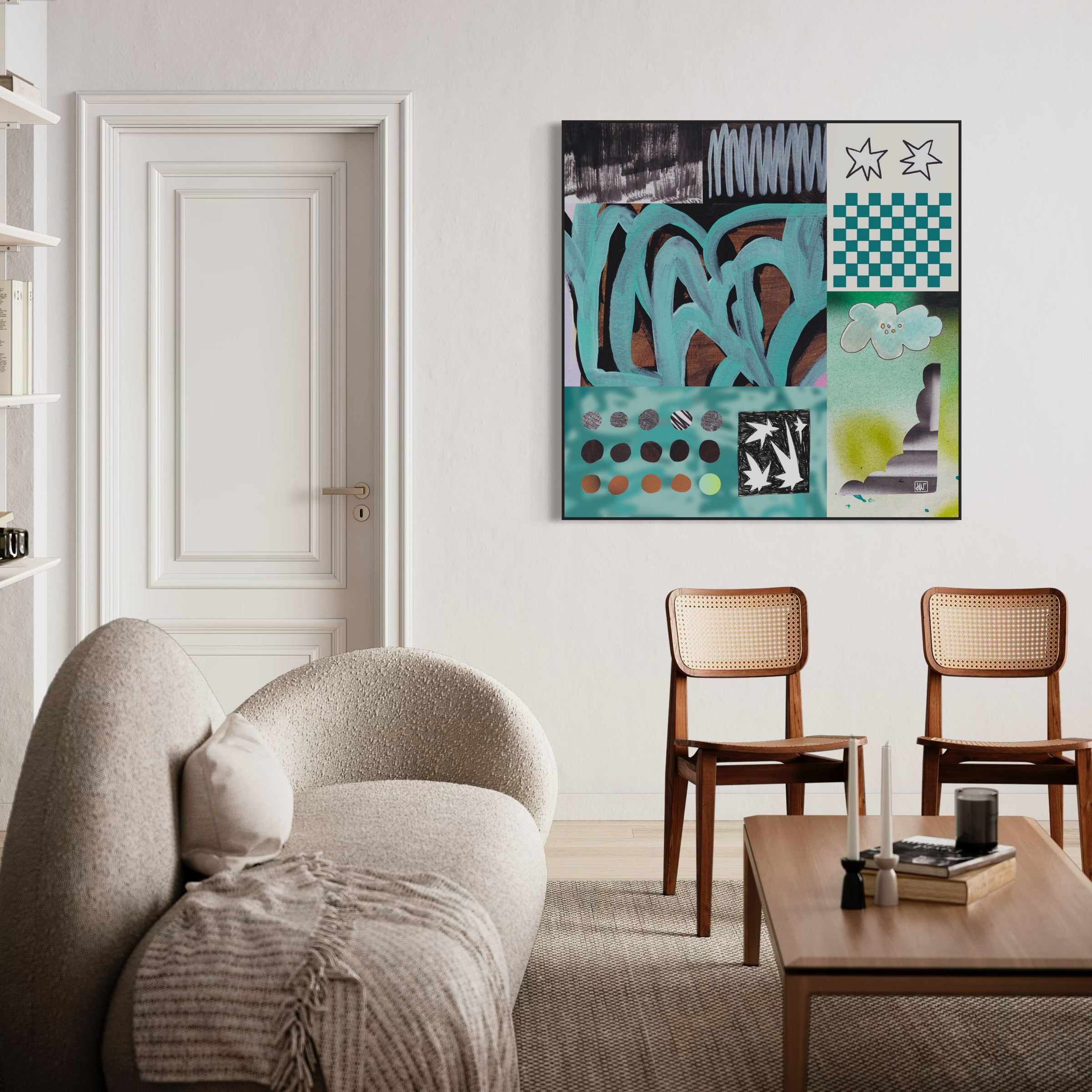 Deze kunst is niet gemaakt om alleen met je bank te matchen. It’s made to vibe with you. Om je te herinneren aan je lef, je dromen en je intuïtie. Speels. Eigen. Met karakter. Niet alleen wall candy — maar daily soul fuel.
